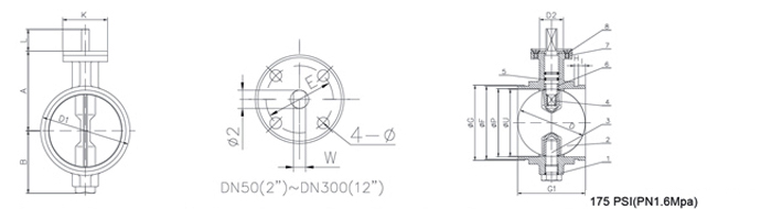 | Size | A | B | D | D1 | D2 | L | H | E | F | G | G1 | I | P | W | U | K | Φ1 | Φ2 | Weight (kg) | |